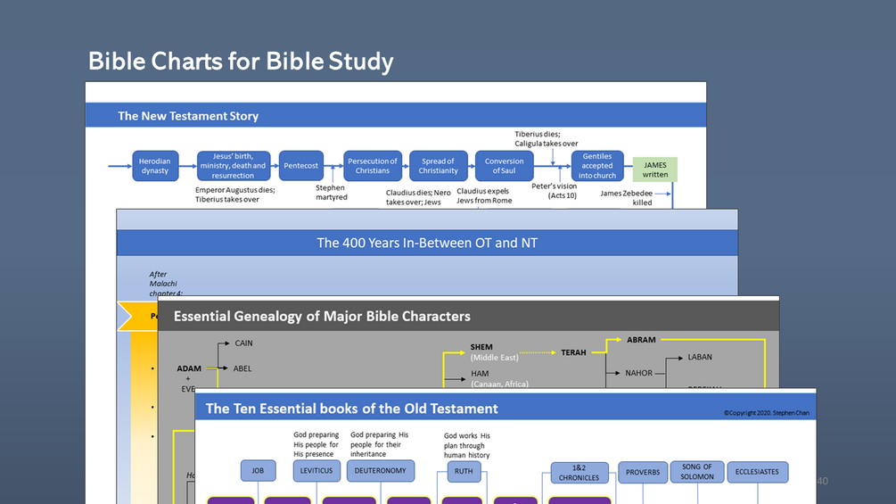 A set of four handy charts to help you fill in the missing pieces and see how each book and person fits into the overall Bible story.